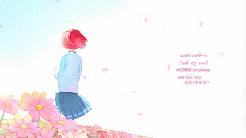 本編だと小鞠たもってああいう、オタクみたいな喋り方なんだけど、EDだとめちゃくちゃ美声なギャップもいい。枯れる秋から花咲く春に至る映像。小鞠たものエピソードって失恋からちょっと時間が経って、そこからの過ぎ去った時間とか、改めて自分の気持ちとか、そういうものに向き合っていく話で……なんか、このちょっと達観した感じのEDがめちゃくちゃ沁みるんですよね。名EDだと思う。